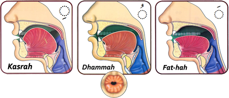 3. Han/hon bör också sänka sin underkäke och höja mitten av sin tunga när han/hon uttalar en bokstav med en kasrah på samma sätt som när han/hon uttalar bokstaven [yā' — ي].