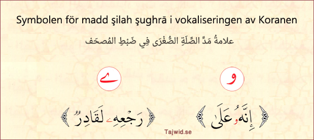 ــ Symbolen för den lilla förbindelsens förlängning (madd şilah şughrā) i vokaliseringen av Koranen är att sätta ett litet wāw (