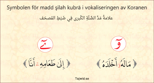 ــ Symbolen för den stora förbindelsens förlängning (madd şilah kubrā) i vokaliseringen av Koranen är att sätta symbolen för madd ovanför den anslutande wāw (