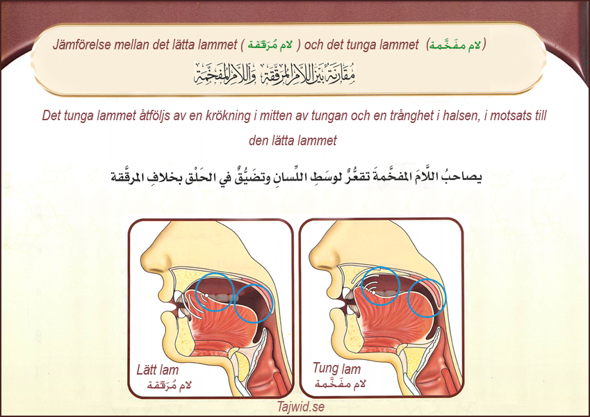 ), då uttalas lam tung ( مفَخَّم), men om vokalen före lam är ( kasrah