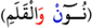 ﴾نٓۚ وَٱلۡقَلَمِ وَمَا يَسۡطُرُونَ ١﴿ Sura Al_Qalam, Ayah 1.