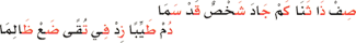 I den första versen är Mīm Sakina i ett fall av Iđhār eller tydligt uttal medan det i den andra versen uttalas utan att bestämt trycka ihop dina läppar och ackompanjeras av ljudet av Ghunnah.