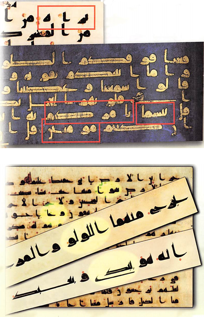 2. Bokstäverna şād, đād, ţāʾ och žāʾ skrevs identiskt i början och kunde bara särskiljas genom muntlig tradition och sammanhang.