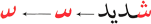 ) som är en förenklad form av bokstaven shīn (ش), hämtad från ordet shadid (شديد), som betyder "stark":