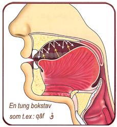 När man uttalar en tung bokstav rör sig luften uppåt mot gommen vilket gör att tungroten lyfts upp och ljudet studsar mot gommen. Detta är resultatet av Isti`la' — الإِستِعلاء.