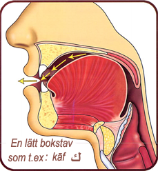 När man uttalar en lätt bokstav rör sig luften utåt och inte upp mot munhålans tak vilket gör att tungan är vilandes nere i munnen.